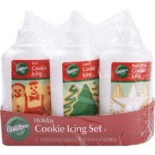 - icing (I used leftover Cream Cheese Frosting that I had frozen and Wilton's cookie icing that came in a 3-pack of white, red and green.)